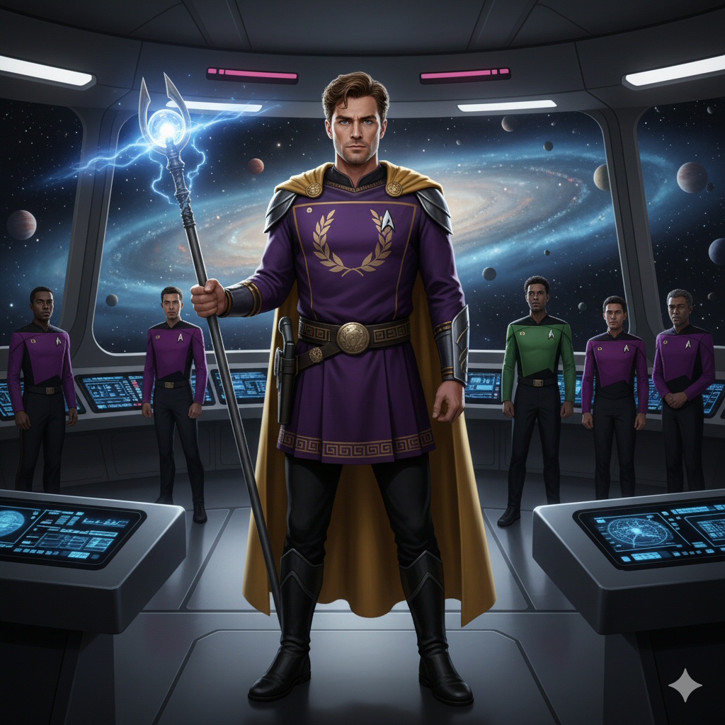 Ho chiesto a Gemini: "Puoi disegnarmi Alessandro Magno come se fosse un personaggio di Star Trek?" Ed ecco il risultato:
