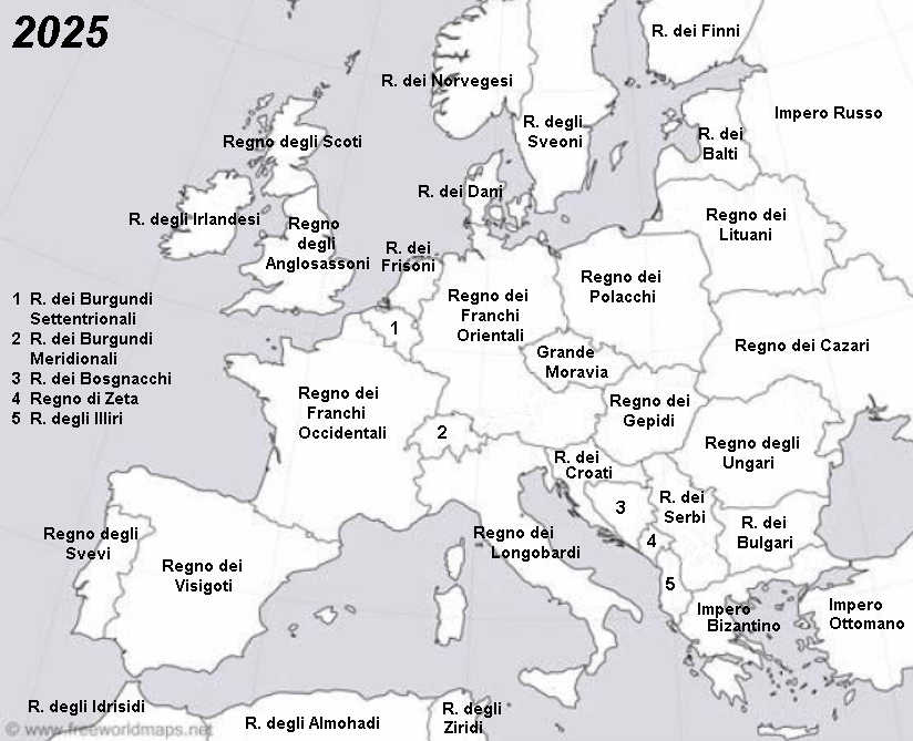 D'altra parte, sempre se ci teniamo stretti alle vicende della Storia reale ogni volta che è possibile, possiamo anche 'copiare e incollare' le divisioni realmente avvenute dopo Carlo Magno.