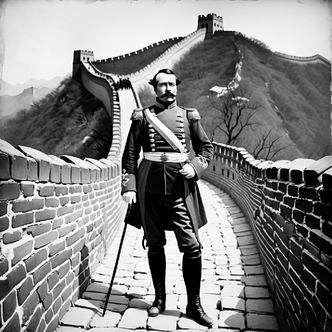 L'imperatore Napoleone III fotografato sulla Grande Muraglia Romana (creata con openart.ai)