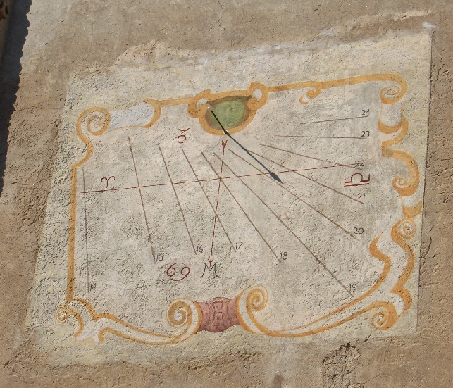 Sulla parete esterna sud della chiesetta si può ammirare anche un orologio solare verticale ad "ore italiche" del XVI secolo: insomma, una bella meridiana, piuttosto rara da trovarsi dalle nostre parti.