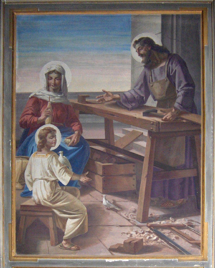 2) sulla destra, la Sacra Famiglia con la scritta « San Giuseppe patrono del lavoro », ed infatti il santo è intento al suo lavoro di falegname. Sotto si può leggere « Dono Circolo di San Giuseppe ».