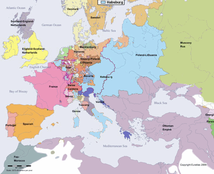1) gli Asburgo, da Imperatori e Re di Spagna, fra il 1706 e il 1847 hanno – in tempi diversi – riunito (nel Sacro Romano Impero – già entro il 1800 – o nei Dominî Ereditarî Asburgici) tutti i territorî non insulari dell'attuale Repubblica Italiana tranne Roma (che però non vi è rientrata solo perché occupata dai Borboni, che se non avessero conquistato Napoli non l'avrebbero potuta occupare), in particolare (oltre a Trieste, Gorizia, il Tirolo e il Trentino) il Ducato di Milano (nella sua integrità ‘spagnola') nel 1706, Mantova (per Fellonia) nel 1708, Napoli nel 1714, la Sardegna nel 1715, la Sicilia nel 1720, la Corsica negli Anni Trenta, i Feudi di Parma (20. gennaio 1731) e Toscana (9. luglio 1737), per due anni Guastalla il 15. agosto 1746 per Estinzione, Venezia nel 1797, il Piemonte (rimasto ai proprî confini orientali del 1630) senza Nizza e Savoia (già conquistate dalla Francia Rivoluzionaria) e le Legazioni Pontificie (Romagna, Marche, Umbria) nel 1799, Genova nel 1800 (con opposto esito della Battaglia di Marengo, essendo Napoglione Buonaparte un Generale Austriaco), Modena-Reggio e Brisgovia come Terzogenitura dal 1803, l'ex--Stato dei Presidî nella Secondogenitura di Toscana dal 1814, di nuovo Parma come Kunkellehen (Feudo Femminile) nel 1815, Massa nella Terzogenitura di Modena-Reggio dal 1829, Lucca nella Secondogenitura di Toscana dal 1847.