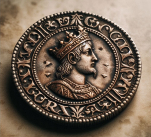 Moneta coniata dal Re Merovingio Gontran V l'Ascia (creata con BING)