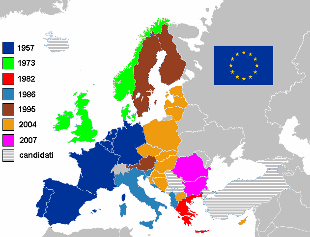 il Primo Ministro Romano Prodi (a fianco: la bandiera