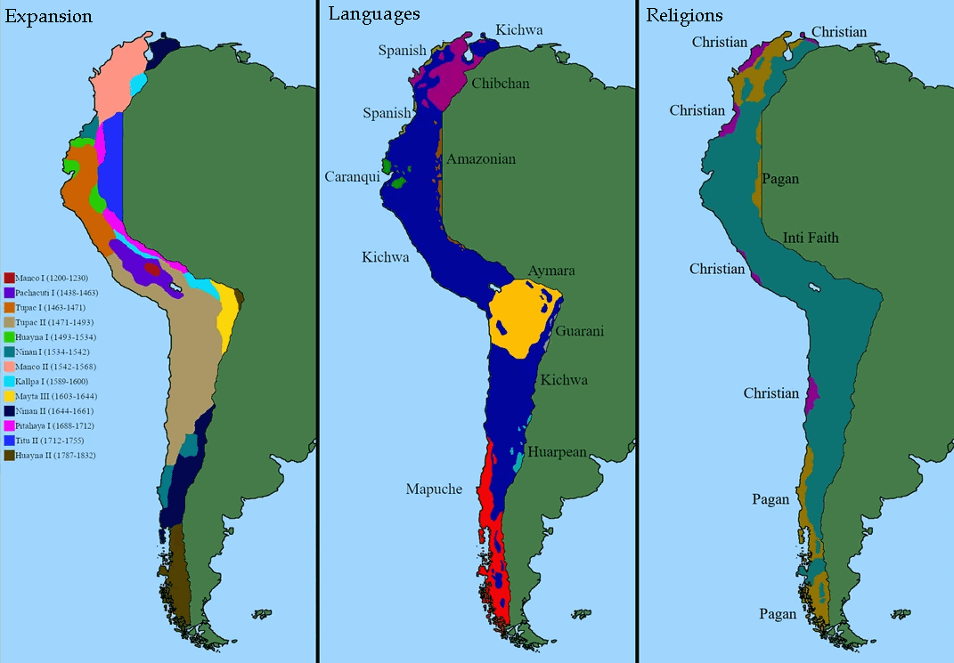 A Sud, l'impero incaico si estende da Panama alla Patagonia, prendendo anche il Venezuela e la Cayenna e ha braccia allungate a livello commerciale fino al Brasile. I suoi nemici peggiori sono gli Araucani del sud, che resistono da 200 anni ad ogni tentativo di sottometterli e sono fonte di continue crisi per l'Impero.