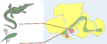 Invece le prove paleontologiche si basano sulla presenza, in entrambi i continenti, della stessa flora che si sviluppò durante di clima freddo del Paleozoico. Fino al Triassico, cioè fino a meno di 200 milioni di anni fa, le faune fossili di America del Sud e Africa (e il paragone può essere esteso anche ad altri continenti, per esempio, il Nordamerica e l'Europa) sono non solo simili, ma addirittura identiche. In particolare, nel Triassico l'ambiente in America del Sud e in Africa doveva essere desertico in quanto si ritrovano rocce come le arenarie e resti fossili di rettili. Quello che più attirò l'attenzione di Wegener fu il Mesosauro, grande coccodrillo d'acqua dolce, i cui resti furono però ritrovati sulle sponde di continenti oggi separati da migliaia di Km d'oceano (vedi immagine sottostante). Nel Giurassico, le condizioni ambientali cambiano e le rocce di quel periodo sono argillose e contengono Pesci e molti fossili di Ostracodi, piccoli animali che non avrebbero potuto in nessuna maniera superare l'oceano attualmente frapposto tra i due continenti. Invece, dal Cretacico superiore in poi, cioè meno di 100 milioni di anni fa, i depositi e le faune cambiano radicalmente e, da quel momento, l'evoluzione della fauna e della flora sudamericane ha seguito percorsi molto diversi da quella africana.Il mistero dei fossili