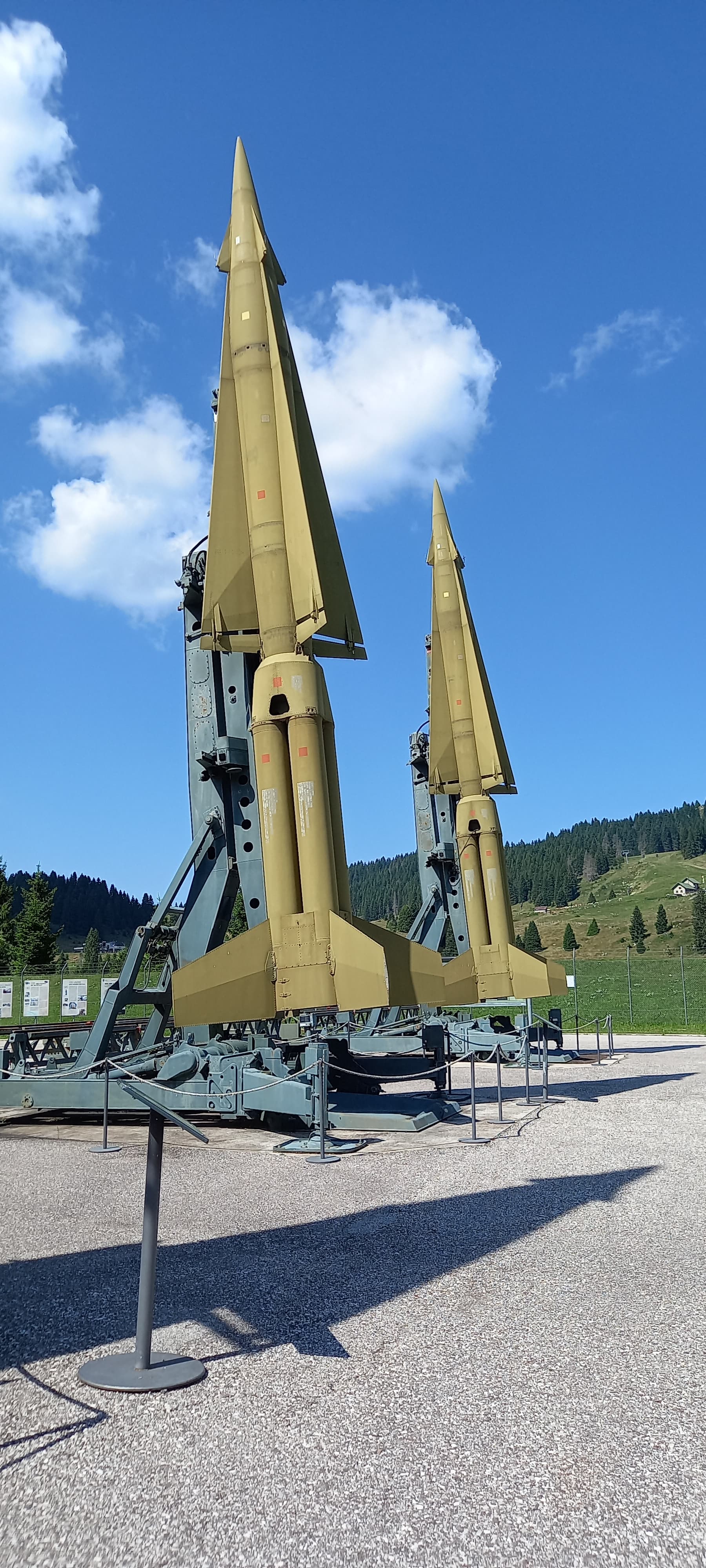 In base al terzo principio della dinamica funzionano anche i missili visibili in questa foto, spcattata il 10 agosto 2025 e speditami dall'amico Enrico Pizzo. I missili in questione appartenevano alla NATO e si trovano a Folgaria (TN), nella cosiddetta Base Tuono, a 1543 m slm. Si tratta di una ex struttura antiaerea dell'Aeronautica Militare, disattivata nel 1978; nel 2010 è stata acquistata dal Comune di Folgaria e bonificata. Due dei tre siti di lancio sono stati smantellati e sostituiti da un lago artificiale, che funge da serbatoio per i vicini impianti di innevamento artificiale, mentre il terzo è stato restaurato ed adibito a sede museale del sistema di difesa missilistico Nike-Hercules. Grazie mille, Enrico! |
