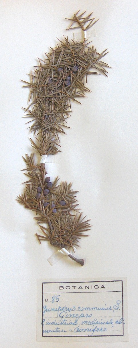 Con il ginepro (Juniperus communis) ritorniamo alle Conifere. Quest'albero rientra nella famiglia delle Cupressacee, è molto diffuso nell'emisfero settentrionale, in genere non supera il metro e mezzo e fornisce la famosa "acquavite di ginepro". |