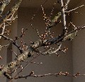 Tra le principali strutture esterne di un fusto legnoso ci sono le gemme, formazioni costituite da tessuti protetti che, quando la stagione è matura, si sviluppano in rami, foglie o fiori. Durante l'inverno le gemme sono protette dalle perule, foglie appositamente modificate; alle gemme apicali si deve l'allungamento del fusto durante la stagione della crescita. Le gemme laterali, in genere più piccole di quelle apicali, danno invece vita a diramazioni del fusto. Le zone del fusto e dei rami in cui si sviluppano le foglie sono dette nodi. Quelle in figura sono gemme di una pianta di prugne (Prunus domestica). |