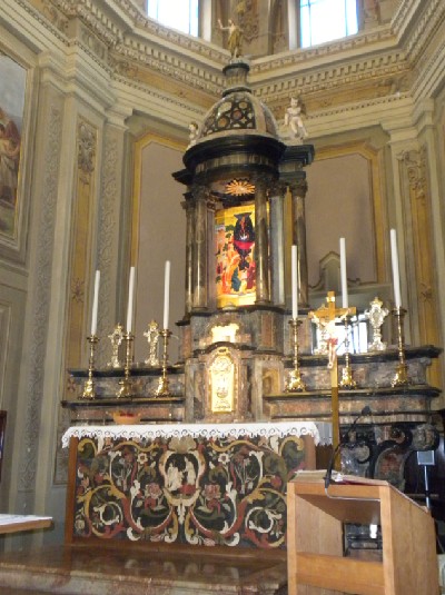 La cappella di Santa Gianna nel Santuario (a sinistra) e l'altare con l'Icona del Cantico dei Cantici (a destra)