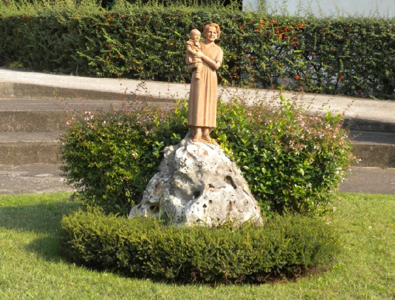 La statua di Santa Gianna, eretta nel giardino accanto al Santuario