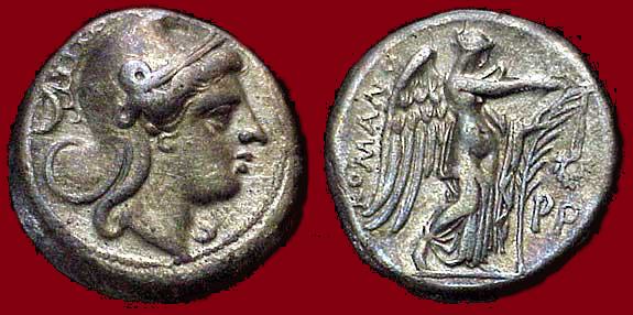 La moneta, detta ora "Vittoriato" fu autorizzata dalla legge Claudia, ma anche in precedenza era usata nei commerci con l'Illiria. Rappresenta la Vittoria e da ciò prese il nome.