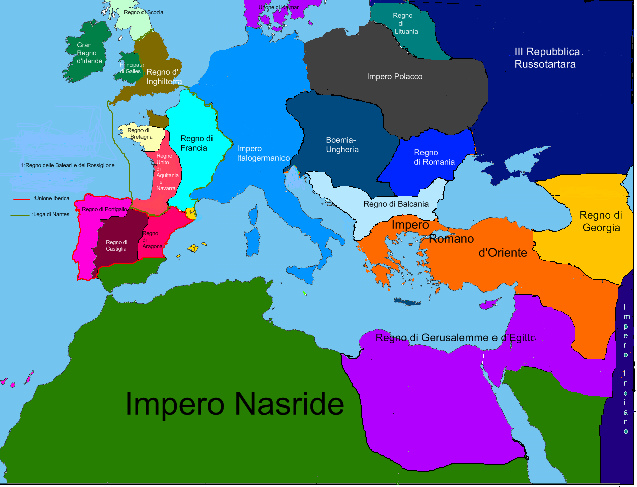 1305: Muore Giovanni II d’Inghilterra, il suo figlio primogenito Arturo gli succede come Giovanni III. Sotto il suo regno terminano finalmente le Guerre Baronali grazie al matrimonio (in seconde nozze) tra Giovanni III e Iolanda di Dreux-Monfort, ultima discendente della famiglia Monfort. Egli inoltre (esattamente come fece in HL in Bretagna quando era Duca) convoca il Parlamento in maniera semi-permanente e gli concede ampi privilegi, prendendo l’abitudine di essere incoronato alla sua presenza.