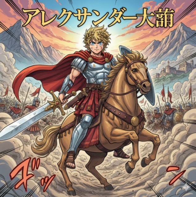 Alessandro Magno in versione Manga! (immagine creata con openart.ai)