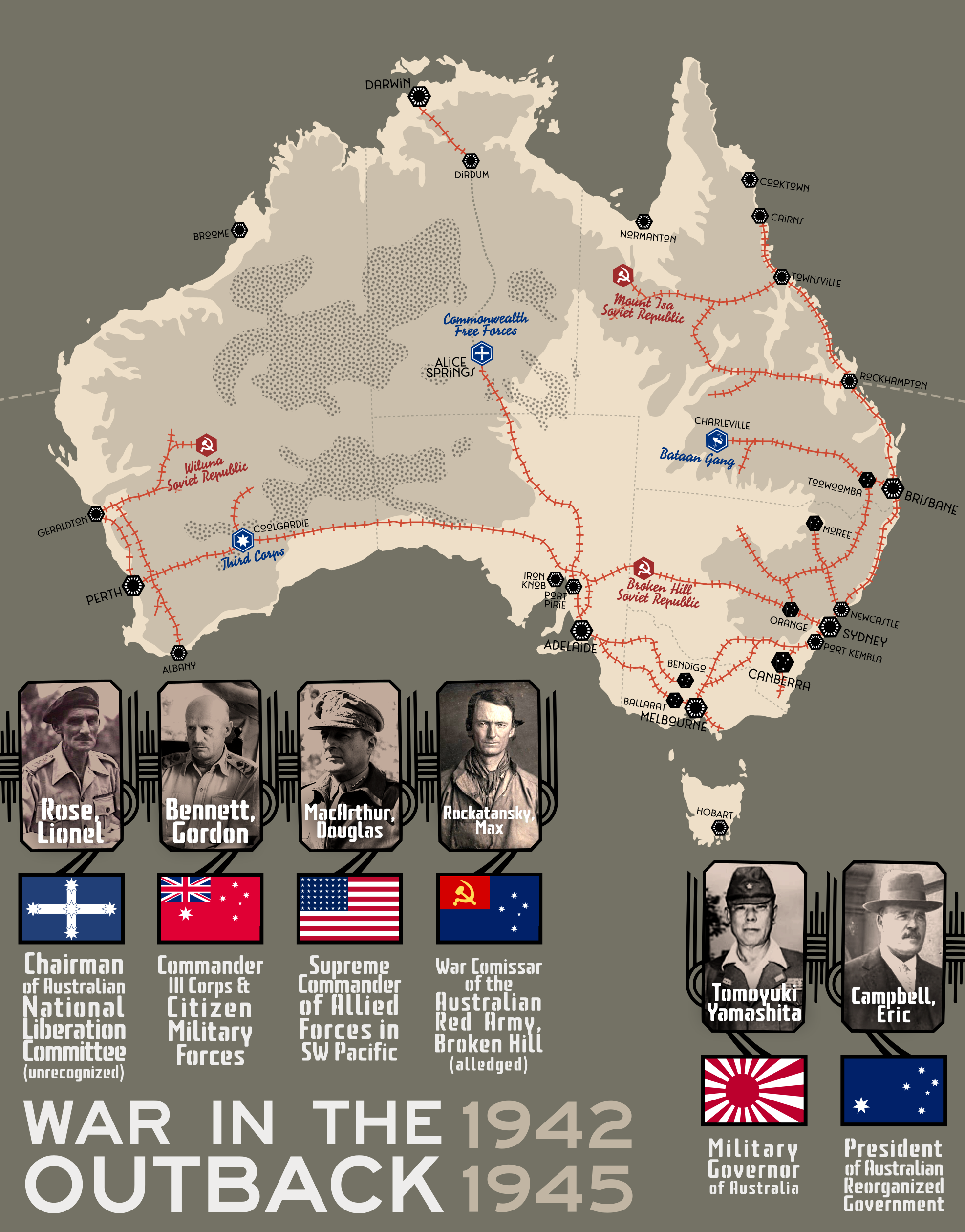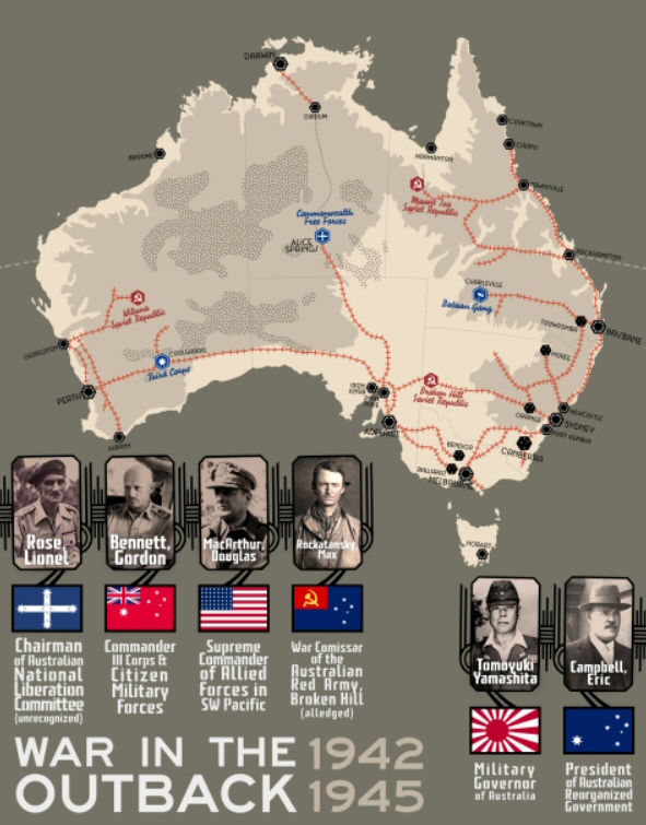 Nord Karafuto: Miglior andamento dell'intervento giapponese della Siberia A differenza della nostra timeline i giapponesi mantengono il controllo del nord dell'isola, i sovietici non avendo le forze e la potenza necessaria per riconquistarla sono costretti a rinunciarci durante la convenzione di base sovietico-giapponese firmata il 20 gennaio 1925.