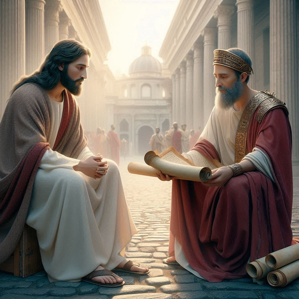 Gesù Cristo a colloquio con Valerio Massimo, lo storico romano che scriverà una storia in latino della sua vita