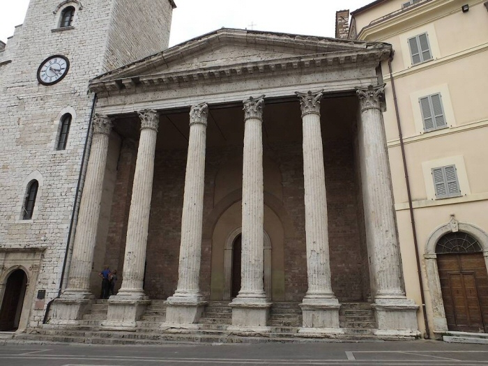 Il Tempio di Atena sorge a Troia in Piazza della Libertà. Non si sa esattamente quando fu eretto, secondo la tradizione fu voluto da Filippo I (padre di Alessandro I Magno) e rifatto in epoca romana, ma secondo gli storici moderni fu eretto nel I secolo a.C. Si tratta comunque del monumento della Troia antica meglio conservato, perchè fu trasformato nella chiesa di Santa Maria sopra Atena da Alessandro VII, fondatore della Dinastia Bagratide, con l'aggiunta del campanile, chiamato Torre del Popolo. L'edificio appartiene alla tipologia del tempio prostilo corinzio "in antis", cioè con pronao delimitato lateralmente dal prolungamento delle pareti della cella, con colonne scanalate poggianti su alti plinti quadrangolari, trabeazione e frontone. Nell'alto medioevo la cella fu trasformata nella chiesa di San Gregorio di Nazianzo, che fu poi sconsacrata e vi furono ricavate abitazioni e botteghe, fino alla trasformazione in chiesa dedicata alla Vergine; la cella è così andata completamente distrutta. Il tempio conserva la facciata, che in origine si affacciava sulla Piazza del Foro Romano, e spicca su un podio rialzato. Si conserva anche la trabeazione con il fregio, che in antico recava un'iscrizione con lettere di bronzo, delle quali restano i fori di fissaggio. Negli anni Duemila è stato riscoperto un breve tratto del tempio vicino all'altare, con un arco murato, tuttora visibile. Sono emerse inoltre parte dell'antica pavimentazione romana e il grande muro di terrazzamento posteriore. Dal cortile dell'edificio attiguo risulta visibile il fianco sinistro dell'antico tempio e, al fondo, il muro di sostegno del terrapieno. Osservandolo ancora oggi, si comprende bene perchè colpì tanto la fantasia di Goethe...