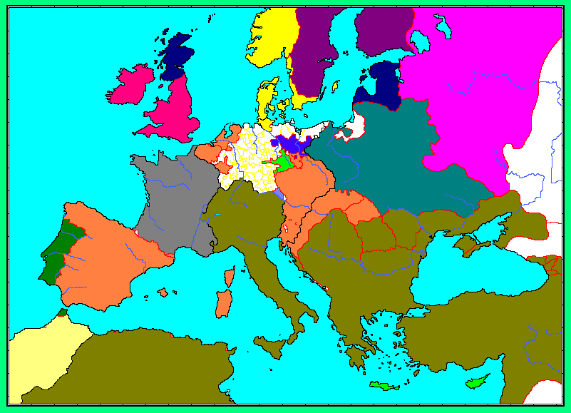 Isole Maggiori), la Spagna (con radicale ipoteca sul Portogallo) e, più o meno direttamente, la massima parte dell'Europa Centrale;