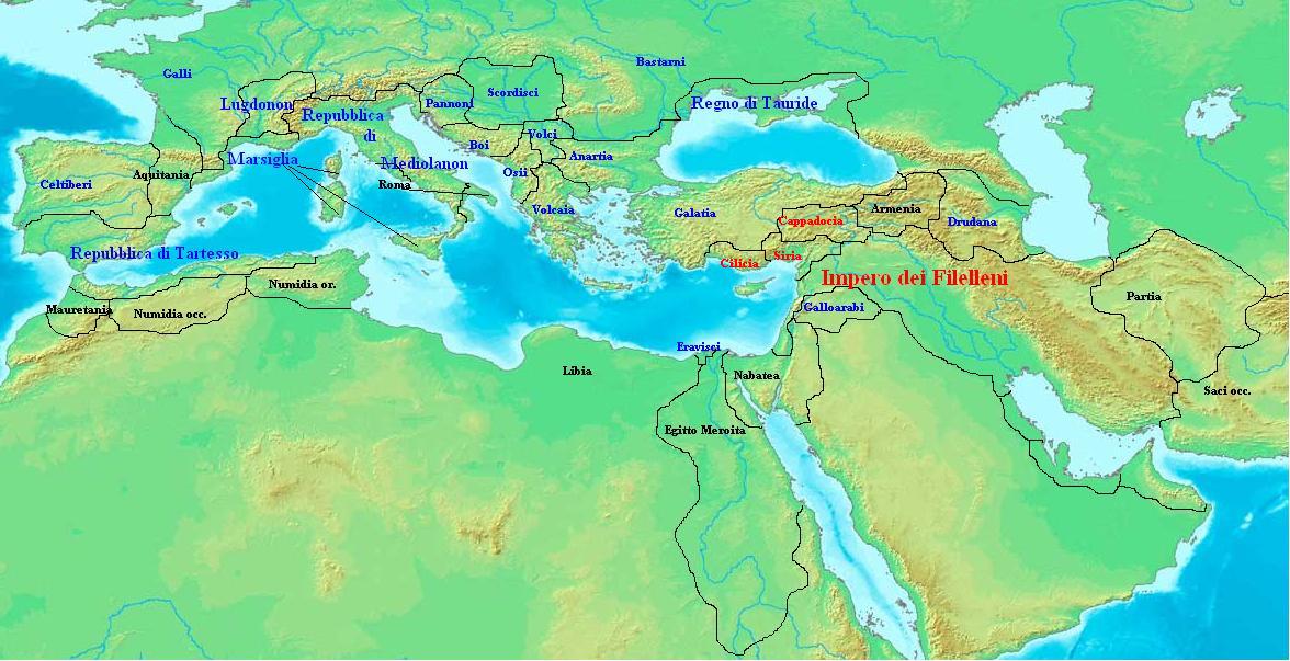Non ci sono più tracce delle dinastie degli Diadochi sia in Asia minore che in Egitto e Siria. Mi domando se i territori dei Balti, Daci ecc. rappresentano regni, imperi o popoli.