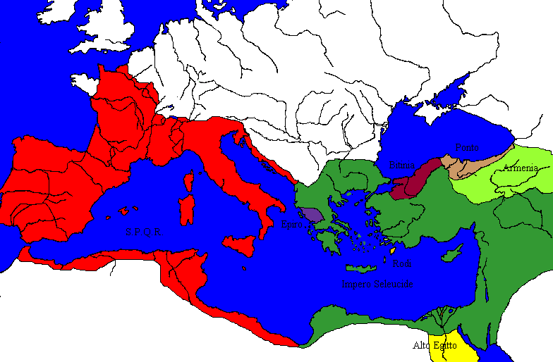 Alla metà del II secolo il Mediterraneo é diviso tra un Occidente romano e repubblicano e un Oriente greco e monarchico, che entrano presto in conflitto. Roma sostiene le resistenze orientali (la ribellione nel 147 a.C. dello stratega Polibio in Grecia, quella dei Maccabei in Giudea...), e i Seleucidi provano ad allearsi con Cartagine e poi con la Numidia prima della loro conquista romana. Nell'88 a.C. Mitridate VI entra in guerra contro il Grande Seleucide, ma presto é in difficoltà e chiede l’aiuto di Roma: inizia la guerra aperta tra le due superpotenze. La Grande Guerra prosegue per 40 anni, ma i Romani sono in vantaggio durante le battaglie.