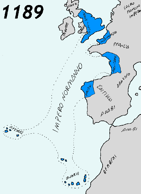 Questa è la cartina dell'impero normanno nel 1189, alla morte di Enrico II Plantageneto: